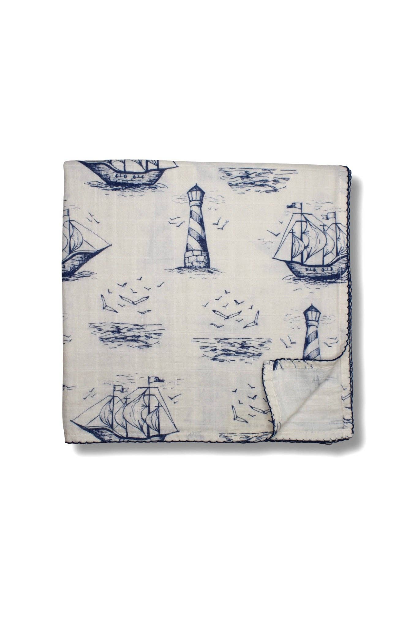 Orders that include a muslin blanket are packaged in a beautiful cotton linen "Little Threads" Bag