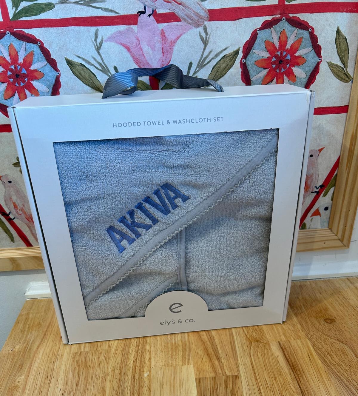 This Terry Hooded Towel and Washcloth Set includes 1 (one) 35” x 35” hooded towel and 1 (one) 10” x 10” washcloth. Bundled in a chic, ivory gift-ready box, this essential bath time set makes for the perfect baby gift!