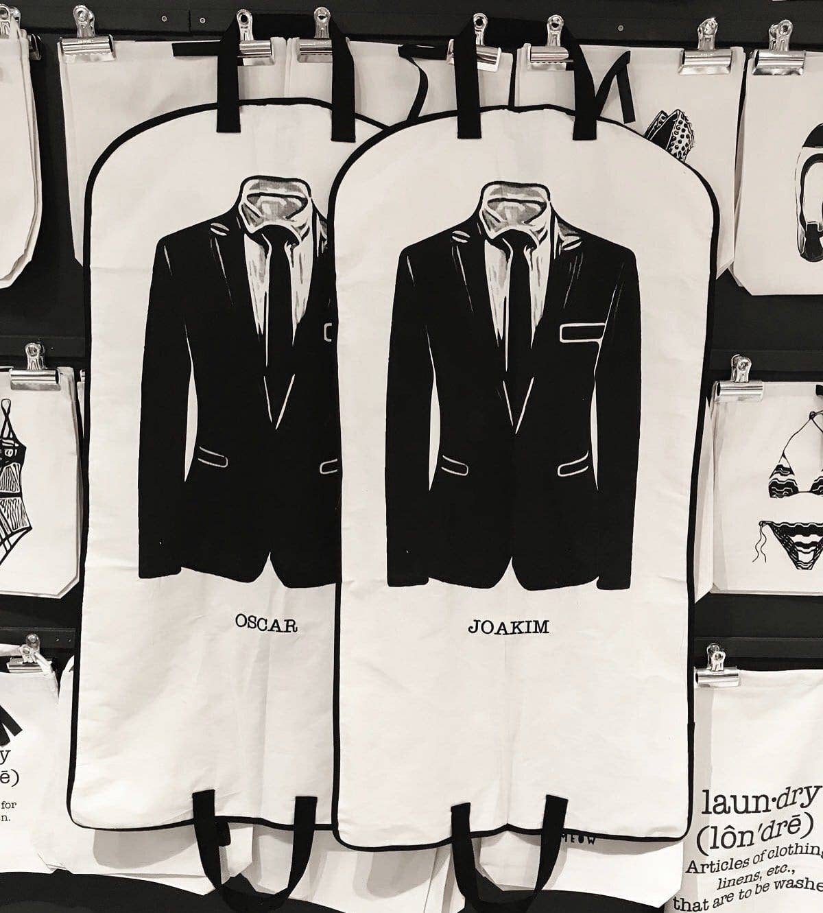 Protect your finest suits with this Men's Suits garment bag! If you are worried about dust or other closet debris, fear no more! This cotton Garment bag will keep your suit clean while letting it breathe, which is good for both cotton and wool fabrics. This travel organizing bag has two handles, one at the top and one at the bottom, which makes it easy to carry. The bag is closed with a durable metal zipper and comes with a zipper pocket in the back to store ties, accessories, and other items. It has a classy, sleek print, making it both stylish and functional. The perfect gift any groom or any occasion. Happy organizing!