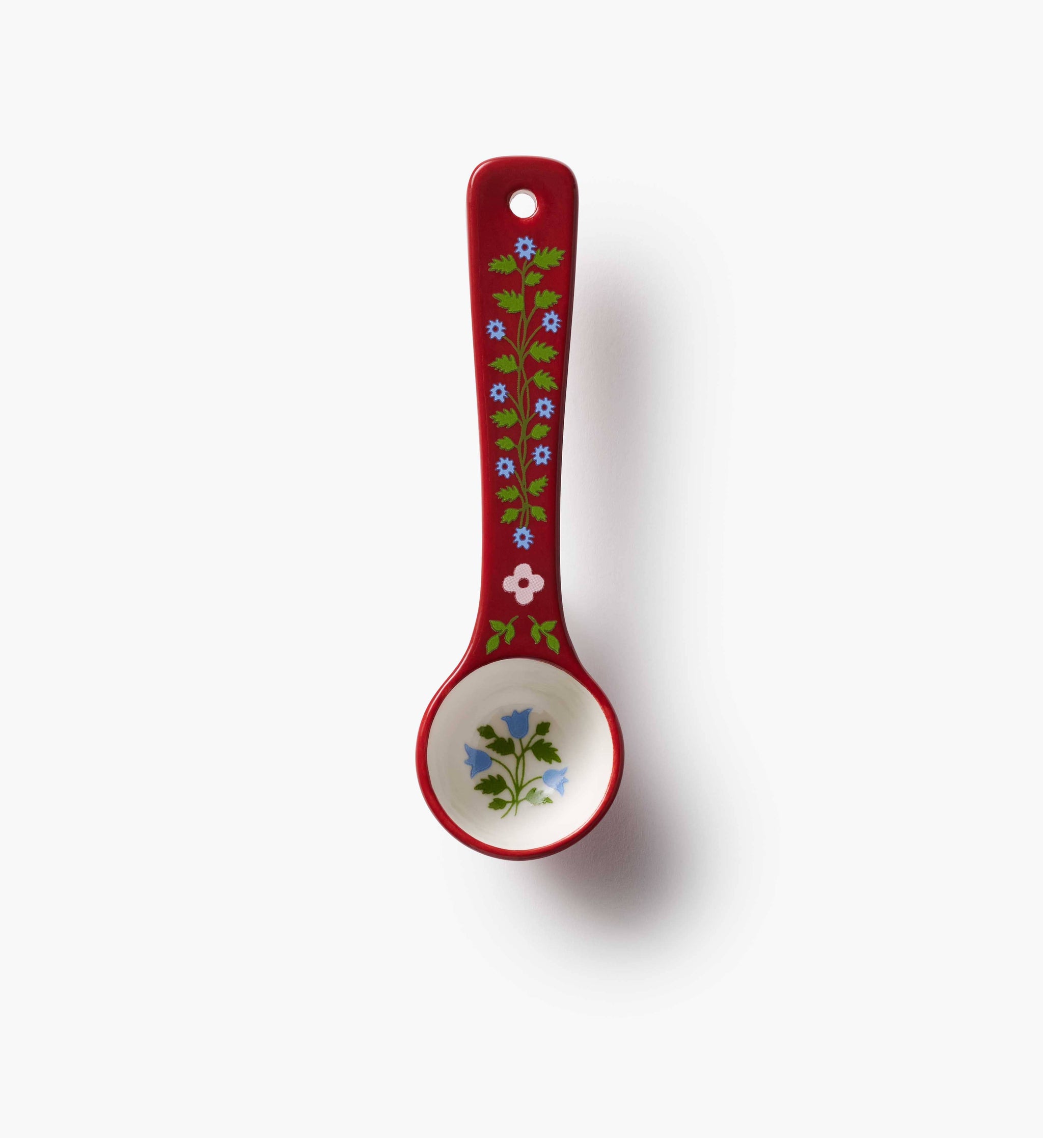 A charming yet functional kitchen essential, this set of four porcelain measuring spoons features 1 Tbsp, 1 tsp, 1/2 tsp, and 1/4 tsp measurements, with unique illustrations on each spoon.