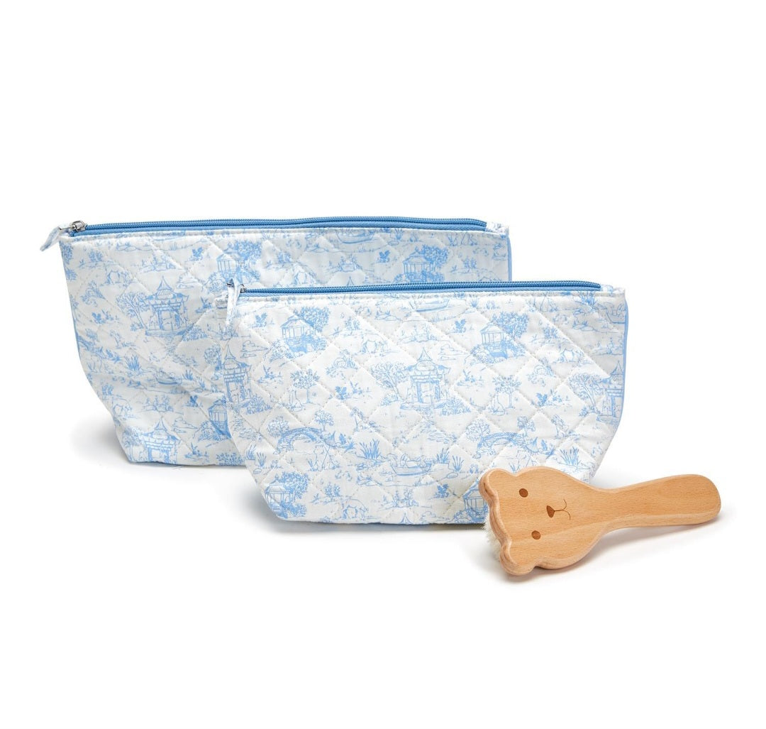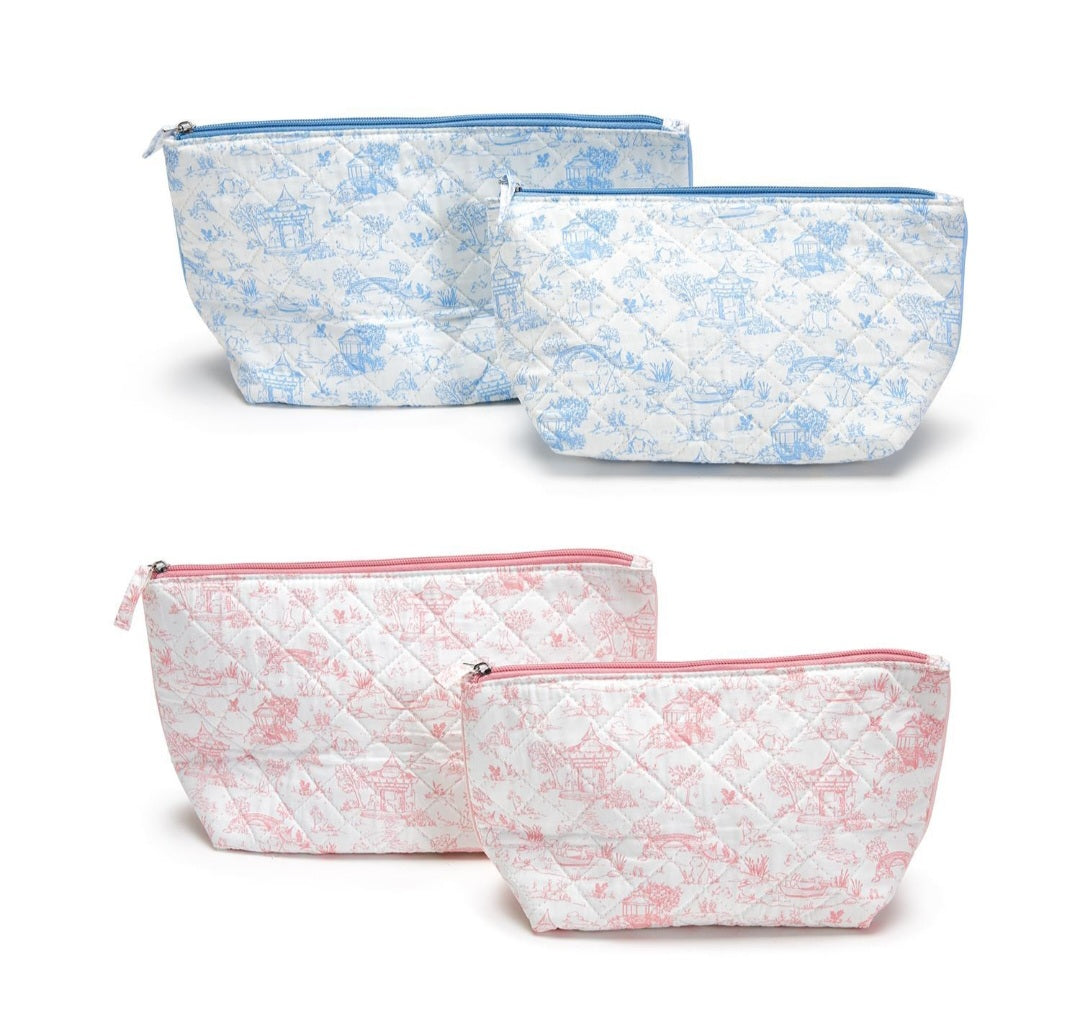Keep your essentials elegantly arranged and embrace the joy of organization with these versatile pouches. These versatile pouches feature an enchanting animal toile pattern, adding a playful and timeless elegance to your organizational needs. With their quilted texture and thoughtful sizing, our pouches are ready to keep your essentials organized in style.
